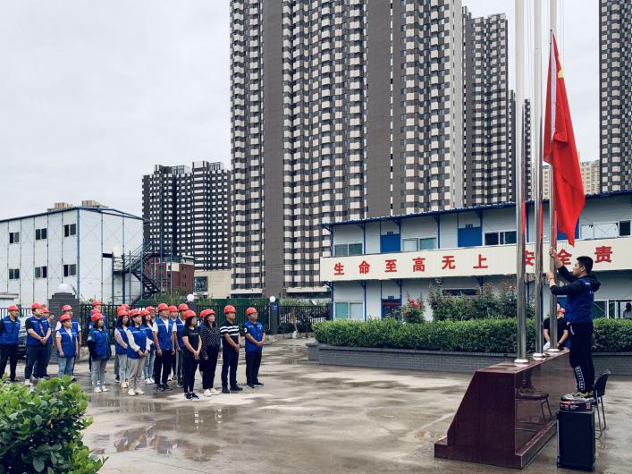 本次主題黨日活動(dòng)共分升旗儀式、主題演講、宣誓、工作匯報(bào)四個(gè)部分。在升旗儀式中,干部職工齊唱國(guó)歌,向國(guó)旗行注目禮。項(xiàng)目經(jīng)理武吉寶圍繞該工程的基本概況、施工組織、工程難點(diǎn)、施工節(jié)點(diǎn)四方面進(jìn)行了匯報(bào),并通過(guò)播放千峰路南延道路工程航拍視頻,全面直觀展示了工程基本情況。