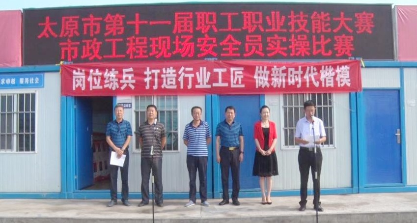 8月10日,由太原市總工會(huì)、太原市人社局、太原市經(jīng)信委、太原市科技局聯(lián)合主辦,太原市政建設(shè)集團(tuán)有限公司承辦的太原市第十一屆職工職業(yè)技能大賽市政工程現(xiàn)場(chǎng)安全員實(shí)際操作比賽,在太原市政集團(tuán)康樂(lè)街泵站項(xiàng)目部隆重舉行。太原市總工會(huì)經(jīng)濟(jì)技術(shù)部部長(zhǎng)梁家齊,太原市職工技術(shù)交流站站長(zhǎng)周彬,太原市住建委安全處處長(zhǎng)李效忠,宣傳部副部長(zhǎng)楊紅迎,太原市政集團(tuán)領(lǐng)導(dǎo)郝東輝、馮忠出席了開幕式。開幕式由黨委委員、監(jiān)事會(huì)主席、工會(huì)主席馮忠主持。