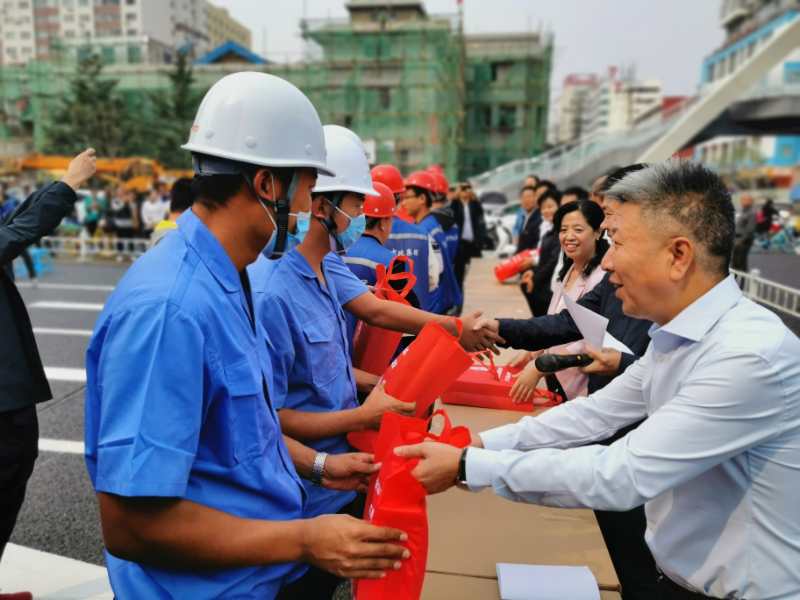 9月22日,太原市總工會(huì)、太原市人社局在集團(tuán)公司承建的解放路改造工程二標(biāo)段現(xiàn)場開展“迎中秋、慶國慶關(guān)愛農(nóng)民工系列活動(dòng)”。市委副書記李新春,市人大常委會(huì)副主任、市總工會(huì)主席張磊出席活動(dòng)。市人社局黨組書記、局長陳曉紅,市委住建工委書記、市住建局局長邵社教,市委住建工委副書記傅立及市總工會(huì)其他領(lǐng)導(dǎo)薛之東、康衛(wèi)青、汪倫、鄒江參加了活動(dòng),集團(tuán)公司黨委書記、董事長郝東輝,黨委委員、監(jiān)事會(huì)主席、工會(huì)主席馮忠也參加了此次活動(dòng)?;顒?dòng)由市委住建工委副書記傅立主持。