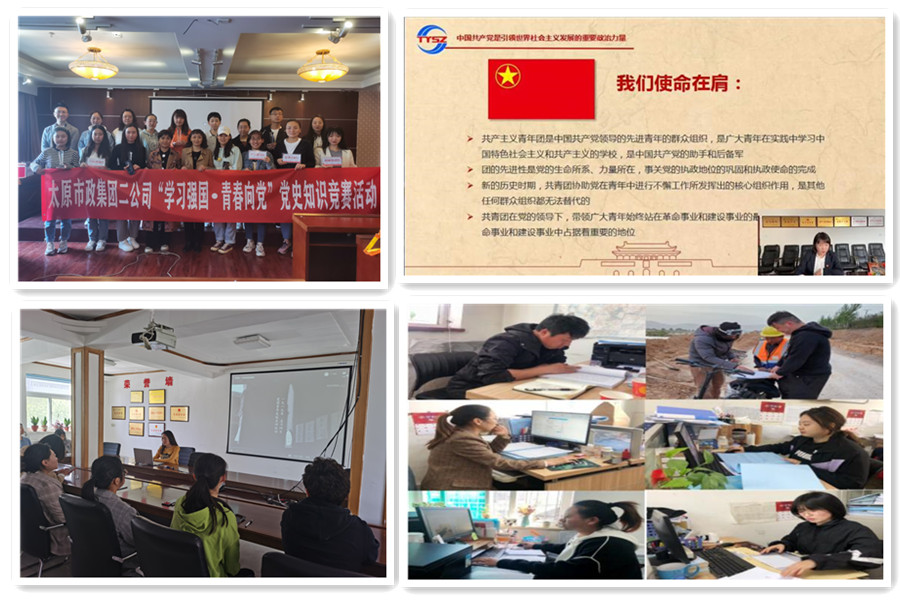 為慶祝中國共產(chǎn)黨成立100周年,在“五四”青年節(jié)之際,太原市政建設(shè)集團有限公司各團支部結(jié)合黨史學習教育,開展一系列內(nèi)涵豐富、形式多樣的主題活動,以展獨特風采譜寫新時代市政青年華麗篇章。