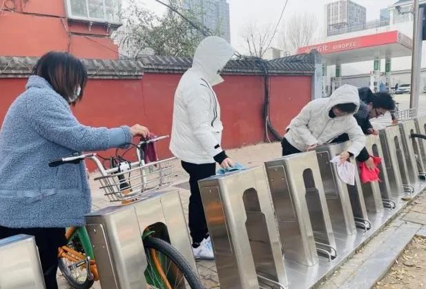 活動(dòng)中,志愿者們對(duì)太原市第二十中學(xué)校門(mén)前的公交自行車停放點(diǎn)進(jìn)行了擦拭,并將車輛擺放整齊,以實(shí)際行動(dòng)為美化城市貢獻(xiàn)力量。