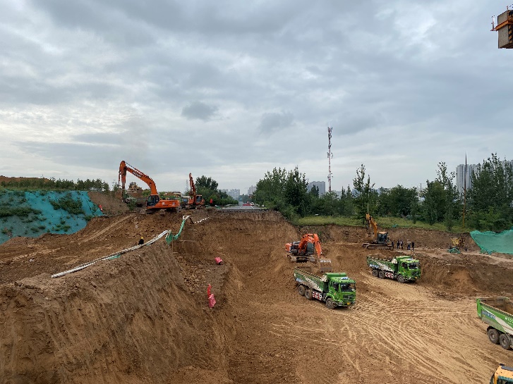 開工伊始,為保證在工期內(nèi)保質(zhì)保量完成施工任務(wù),項(xiàng)目部將工程按照路口和節(jié)點(diǎn)劃分為三個(gè)工區(qū),采取平行作業(yè)、見縫插針、多點(diǎn)開花的施工方式,搶抓施工節(jié)點(diǎn),打開工作面。根據(jù)設(shè)計(jì)要求,該工程在下穿東山過(guò)境高速節(jié)點(diǎn)設(shè)置通道,采用全斷面分級(jí)放坡開挖方式進(jìn)行施工。由于高速封閉、改遷、臨時(shí)保通便道的使用和恢復(fù)都需要與交警、高速公路等多個(gè)單位、部門溝通協(xié)調(diào),程序繁瑣、手續(xù)復(fù)雜。項(xiàng)目部精準(zhǔn)施策破解難點(diǎn),派專人負(fù)責(zé)溝通協(xié)調(diào),提前按要求備齊資料,在最短的時(shí)間內(nèi)辦理好了相關(guān)手續(xù)。在辦理通道施工相關(guān)手續(xù)的同時(shí),其他工區(qū)也在緊張施工,平行作業(yè)與流水作業(yè)交替進(jìn)行。截至目前,東中環(huán)到高速路以西已完成中面層瀝青混凝土鋪筑,為下穿高速通道工程的土方開挖、外運(yùn)打通運(yùn)輸通道,為后續(xù)通道施工創(chuàng)造了良好的施工條件,贏得寶貴的施工時(shí)間。