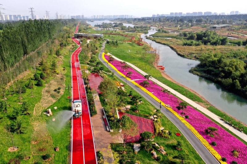 汾河生態(tài)景觀帶工程北起尖草坪區(qū)上蘭汾河漫水橋,南至柴村橋北500米,包括汾河景觀帶工程?hào)|岸一標(biāo)段、二標(biāo)段和西岸堤頂路工程,全長(zhǎng)約18公里,主要包括橋梁工程、給排水工程和道路工程,于2021年1月開(kāi)工建設(shè),由三公司負(fù)責(zé)承建。該工程作為市重點(diǎn)工程,開(kāi)工伊始就備受上級(jí)領(lǐng)導(dǎo)及廣大市民的熱切關(guān)注,全體施工人員夜以繼日、奮力拼搏,24小時(shí)不間斷施工,采用“時(shí)間不斷、空間占滿”的施工原則,掀起了大干熱潮,樹(shù)立“開(kāi)工就是決戰(zhàn),決戰(zhàn)必須決勝”的必勝信念。在短短35天內(nèi),西岸堤頂路8400米的道路工程全部完成;由于需要緊急進(jìn)行降井作業(yè)搶修,15家基層單位歷經(jīng)113個(gè)小時(shí)聯(lián)合作戰(zhàn),完成降井施工任務(wù),彰顯了新時(shí)代市政速度。施工中,項(xiàng)目部堅(jiān)持“高標(biāo)準(zhǔn)起步、高質(zhì)量建設(shè)、高效率推進(jìn)”,通過(guò)進(jìn)行技術(shù)交底,組織技術(shù)培訓(xùn),實(shí)行統(tǒng)一管理,完善工作機(jī)制,為保障工程質(zhì)量打牢堅(jiān)實(shí)基礎(chǔ);召開(kāi)成本分析會(huì),細(xì)化成本目標(biāo),學(xué)習(xí)文明施工管理規(guī)定,嚴(yán)格安全技術(shù)交底,制定疫情防控預(yù)案,加強(qiáng)施工現(xiàn)場(chǎng)的成本控制和安全管理。隨著西岸堤頂路彩色陶瓷顆粒的鋪設(shè)完畢,汾河景觀帶工程猶如兩條紅色的長(zhǎng)龍,蜿蜒在汾河兩岸,為城市增添了一抹絢麗的色彩。