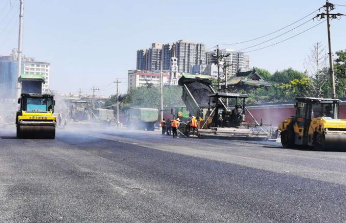 8月11日早上9點(diǎn),在四公司承建的水馬路建設(shè)工程施工現(xiàn)場(chǎng),項(xiàng)目部全體施工人員早已為工程北段下面層瀝青混凝土攤鋪?zhàn)鲋黜?xiàng)準(zhǔn)備工作。當(dāng)一車車滾燙瀝青被倒入瀝青攤鋪機(jī)的入料口,隨著攤鋪機(jī)的前進(jìn),瀝青混凝土被攤鋪到地面,并散發(fā)著刺鼻的氣味,大家來不及擦拭臉上的汗水,緊隨攤鋪機(jī),用手里的摟耙不停地整平著粒料。時(shí)值酷暑,全體施工人員的臉被熱氣炙烤得發(fā)燙,身上的衣衫也早已被汗水浸濕,但大家沒有喊苦喊累,默默堅(jiān)守在各自的崗位上,認(rèn)真做好每一道工序,確保路面瀝青鋪設(shè)的質(zhì)量。隨著壓路機(jī)往復(fù)碾壓,一條黝黑平整的柏油路逐漸有了雛形,接下來項(xiàng)目部將會(huì)進(jìn)行其他路段的攤鋪工作。