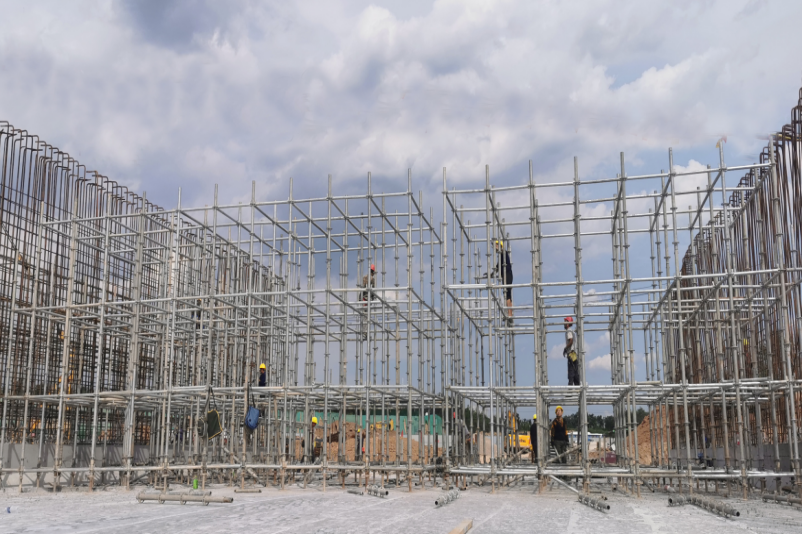 支架搭設(shè)提質(zhì)量 該工程在由東向西下穿東山過境高速公路的施工中,設(shè)計有1座長65米、寬33米、高8米,單孔跨徑為18米的四孔通道箱涵。依據(jù)國家相關(guān)規(guī)定,該通道施工屬于超過一定規(guī)模且危險性較大的分部分項工程,需要組織專家對施工方案進行論證。項目部提前謀劃,開工伊始責(zé)成相關(guān)技術(shù)人員制定專項方案,在六月中旬順利通過了專家論證,為后續(xù)施工奠定了堅實基礎(chǔ)。針對該通道墻板厚、荷載大、支模架搭設(shè)跨度寬的情況,項目部按照規(guī)定要求,決定采用組裝快捷、使用方便、節(jié)省費用、安全性達標(biāo)的盤扣式鋼管支架進行打設(shè),確保高支?;炷翝仓踩€(wěn)定,有效保證了頂板支架搭設(shè)的施工安全。