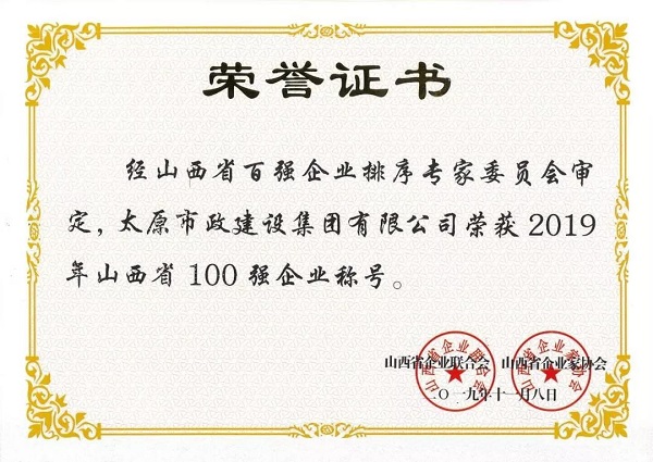 11月8日,山西省企業(yè)聯(lián)合會、山西省企業(yè)家協(xié)會攜手山西財(cái)經(jīng)大學(xué)向社會發(fā)布“山西企業(yè)100強(qiáng)排行榜”,同時發(fā)布《山西企業(yè)100強(qiáng)(年度)發(fā)展報(bào)告》。太原市政建設(shè)集團(tuán)有限公司榮獲“2019年山西省100強(qiáng)企業(yè)”稱號,排名第39位。