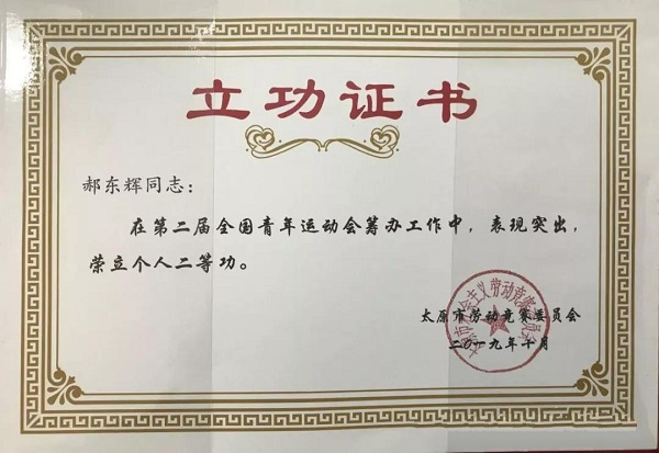 近日,太原市政建設集團有限公司黨委書記、董事長郝東輝榮獲“第二屆全國青年運動會籌辦工作個人二等功”榮譽稱號。一公司工長張棟超榮獲“第二屆全國青年運動會籌辦工作個人一等功”榮譽稱號。
