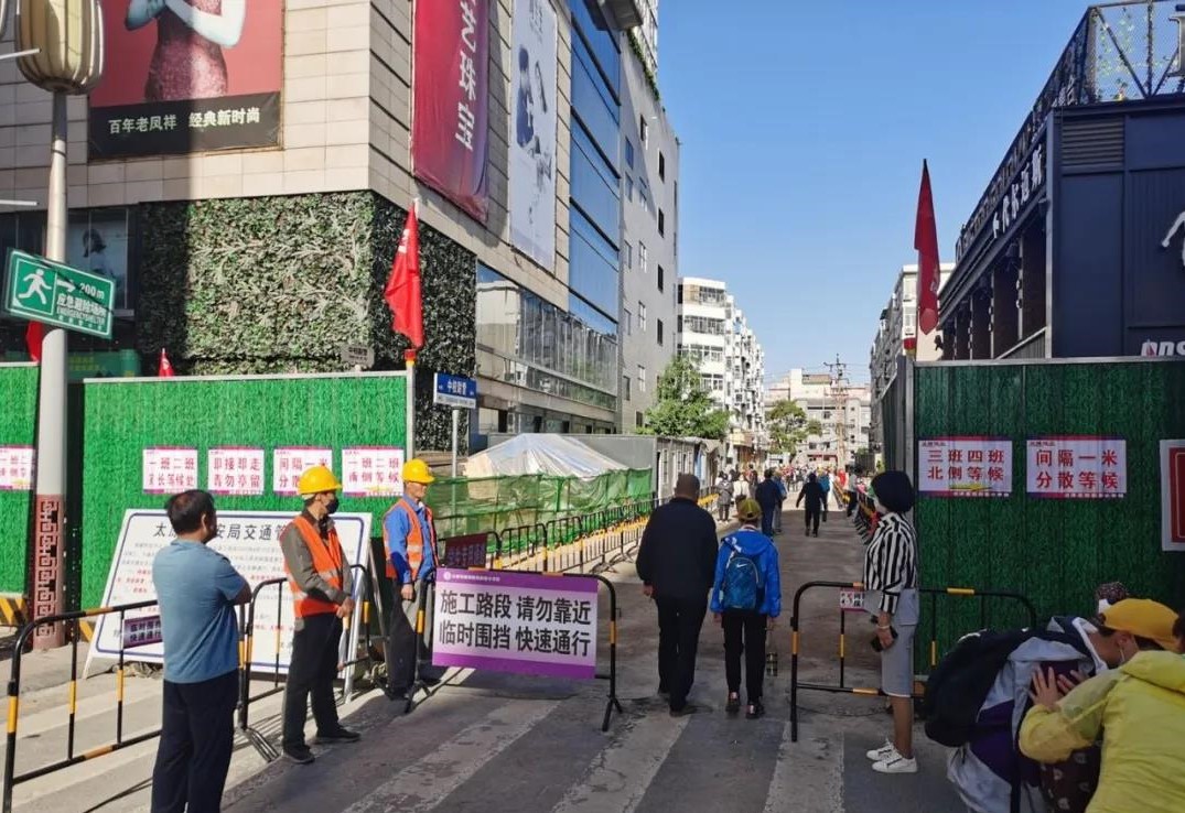 地下管線錯綜復(fù)雜、作業(yè)面狹窄、人流量較大無法封閉施工……為保障工程按時完工,五公司、十四項目部全體施工人員晝夜奮戰(zhàn)、人工作業(yè),全力推動施工進展。