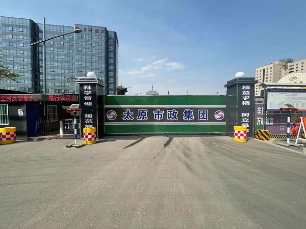 該工程作為太原市今年的重點工程,二公司上下高度重視,開工前召開安全文明施工動員會,要求全員認真執(zhí)行六個百分百相關(guān)要求,提前規(guī)劃安全文明施工具體內(nèi)容,全力打造安全文明標(biāo)準(zhǔn)化工地。項目部認真落實創(chuàng)建綠色文明工地要求,嚴格執(zhí)行《太原市建設(shè)工程安全文明標(biāo)準(zhǔn)化管理手冊》標(biāo)準(zhǔn),注重創(chuàng)新改善項目部整體外觀形象,重新設(shè)計了項目部入口和圍擋,采用反光噴繪布覆蓋工地大門,并對大門周邊輪廓進行不銹鋼條鑲嵌,方便夜間車輛進出工地;在大門門柱上方加裝“帽檐”,四邊用鋼條裝飾,讓大門整體更顯美觀。同時,項目部根據(jù)廣場周邊人口密集、商場眾多等情況,在圍擋的設(shè)計上進行改良,將傳統(tǒng)的3毫米鋼板改為5毫米鋼板,并用噴繪布全范圍覆蓋,提高了圍擋整體牢固度和美觀度。