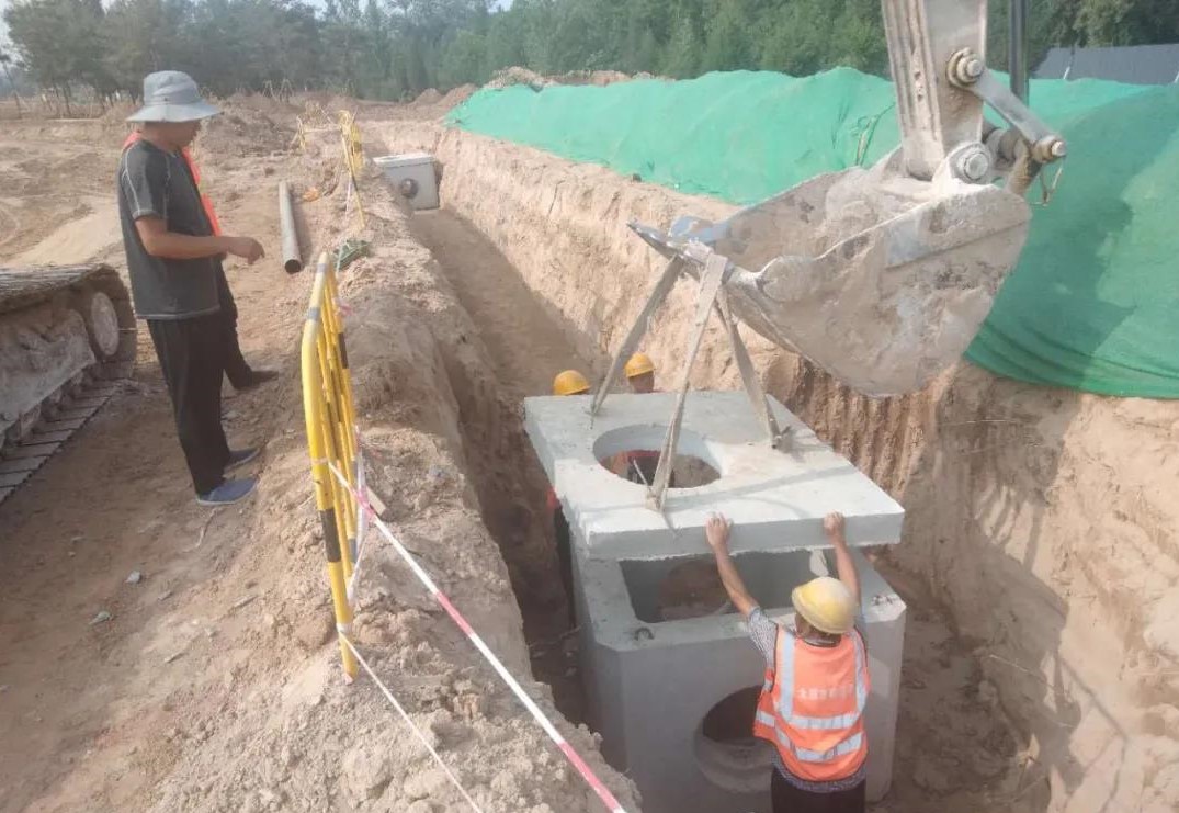 該工程包括道路工程、給排水工程、供熱工程、電氣及弱電工程等,涉及雨水、污水、給水等九種管線施工。施工前,項(xiàng)目部針對(duì)工程管線多,且各類(lèi)管線的埋深及位置不同,因地制宜、提前規(guī)劃,安排施工人員第一時(shí)間摸清管線施工位置,做好分區(qū)域、分層次施工安排。施工中,項(xiàng)目部針對(duì)工程點(diǎn)多面廣的情況,將整個(gè)工地分為東西兩個(gè)工區(qū),安排四個(gè)施工隊(duì)分別負(fù)責(zé)各類(lèi)管線施工,交叉利用機(jī)械進(jìn)行倒替作業(yè),為后續(xù)施工贏得更多時(shí)間。同時(shí),由于雙塔景區(qū)項(xiàng)目分九個(gè)標(biāo)段,周邊施工的兄弟單位眾多,管線及道路施工都與園林、古建等施工單位存在交叉施工的情況。項(xiàng)目部“兩手抓、雙推進(jìn)”,一邊組織相關(guān)人員進(jìn)行現(xiàn)場(chǎng)勘察,優(yōu)化施工方案;一邊積極與業(yè)主及周邊施工單位進(jìn)行溝通協(xié)調(diào),合理確定機(jī)械、材料等進(jìn)場(chǎng)時(shí)間,采取錯(cuò)峰施工,最大化減小交叉施工影響,加快推動(dòng)工程進(jìn)展。