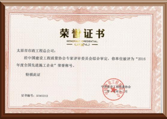 2016年全國(guó)先進(jìn)施工企業(yè)