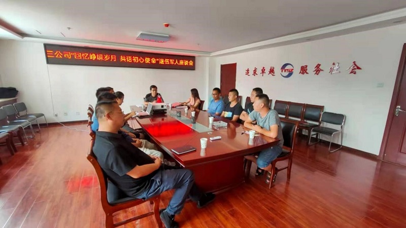 8月1日,三公司召開“回憶崢嶸歲月 共話初心使命”退伍軍人座談會。共11人參加了會議。會上,大家一同觀看了視頻《人民軍隊的擔(dān)當(dāng)》。大家分別介紹自己的軍旅生涯,并結(jié)合自己的工作實(shí)際,就如何發(fā)揚(yáng)軍人風(fēng)采、不忘初心、堅持釘釘子精神暢所欲言。經(jīng)理栗建軍、黨支部書記郭娟娟向退伍軍人們致以節(jié)日祝賀,勉勵大家要在工作中帶頭弘揚(yáng)正氣,踐行“退伍不褪色,退役不退志”的錚錚誓言。