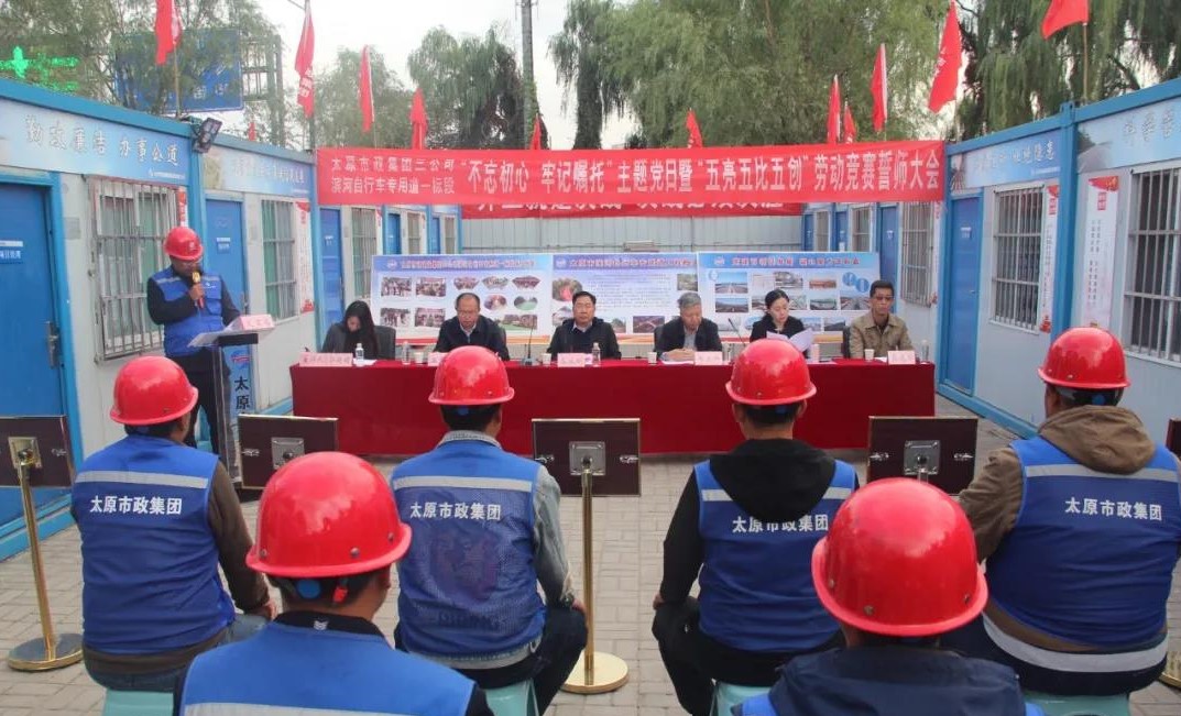 會(huì)上,三公司經(jīng)理栗建軍介紹了濱河自行車專用道工程一標(biāo)段工程概況及施工進(jìn)展情況。該工程道路負(fù)責(zé)人、三公司副經(jīng)理柳文斌宣讀了《太原市政集團(tuán)第三工程公司濱河自行車道一標(biāo)段“五亮五比五創(chuàng)”勞動(dòng)競(jìng)賽實(shí)施方案》。參會(huì)領(lǐng)導(dǎo)為以工區(qū)負(fù)責(zé)人姓名命名的5個(gè)工區(qū)授旗,全體參建人員進(jìn)行集體宣誓。集團(tuán)公司勞動(dòng)模范、該工程橋梁負(fù)責(zé)人、三公司副經(jīng)理郝俊軍分享了他的奮斗故事。第七工區(qū)負(fù)責(zé)人武瑞杰代表各工區(qū)進(jìn)行表態(tài)發(fā)言,表示將自我加壓、勇挑重?fù)?dān),為濱河自行車專用道工程決戰(zhàn)攻堅(jiān)貢獻(xiàn)青春智慧和力量。