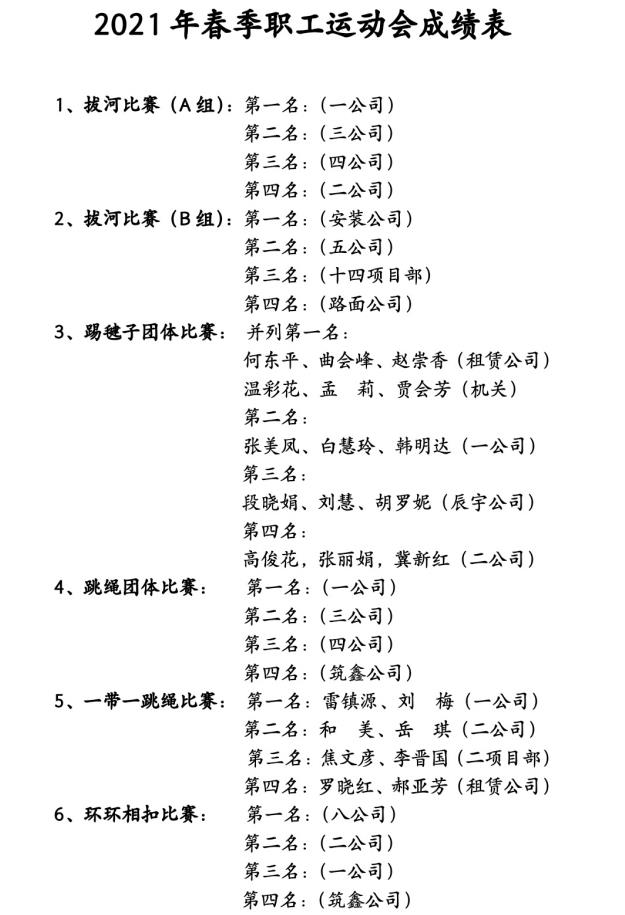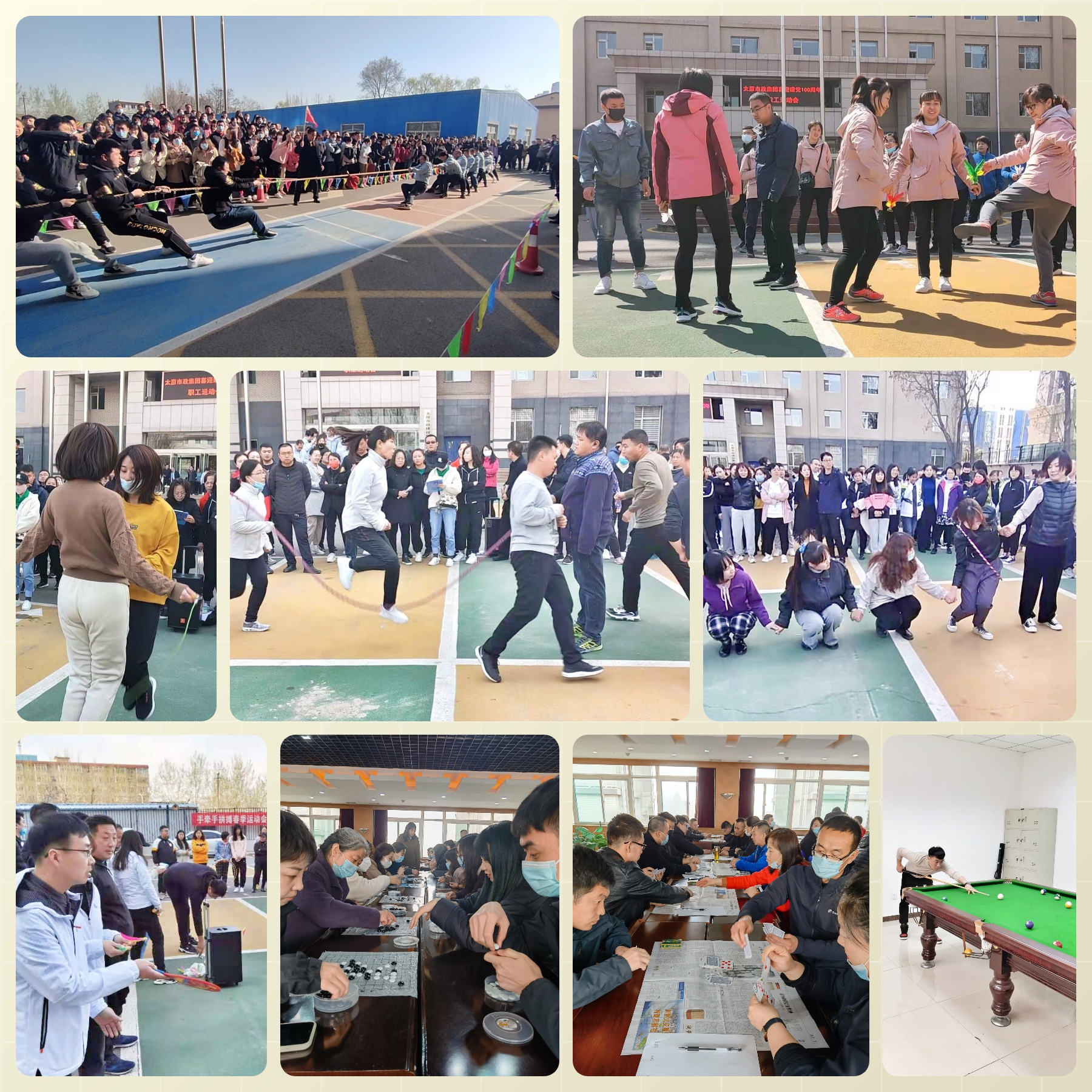 本次運(yùn)動(dòng)會(huì)為期3天,共設(shè)有9個(gè)項(xiàng)目,報(bào)名職工達(dá)700余人次。運(yùn)動(dòng)會(huì)涉及拔河、團(tuán)體跳繩及今年新增加的“環(huán)環(huán)相扣”等團(tuán)體項(xiàng)目,五子棋、斗地主等個(gè)人項(xiàng)目。
