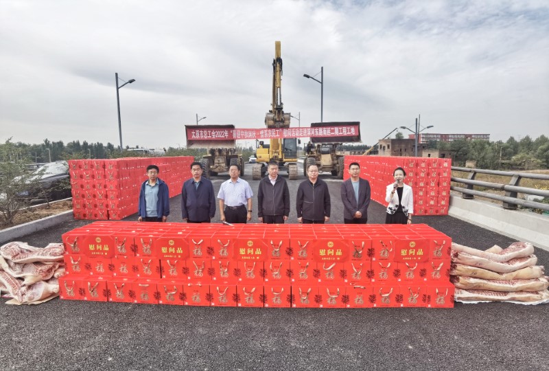 活動中,太原市總工會領(lǐng)導(dǎo)來到施工現(xiàn)場與一線施工人員進(jìn)行親切交談,了解施工和生活情況,并為大家送來了月餅、豬肉等慰問品。