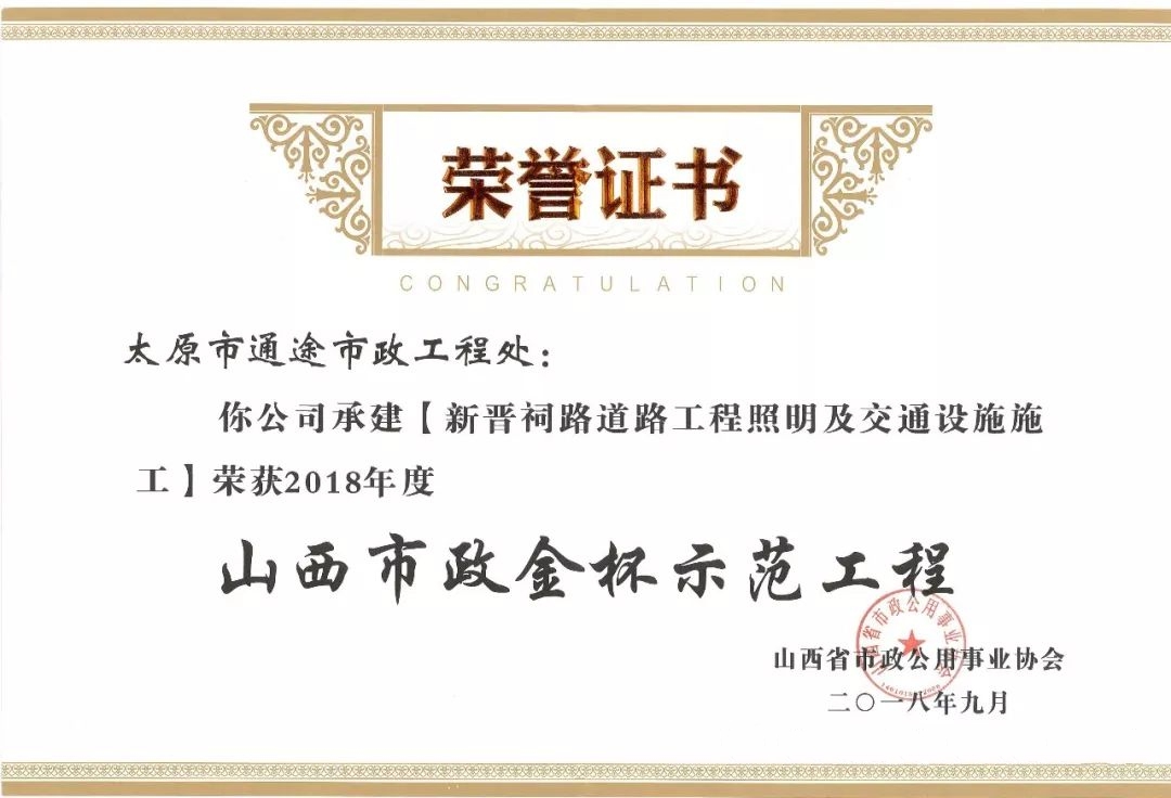 通途市政工程處兩項(xiàng)工程喜獲山西省市政金杯示范工程榮譽(yù)稱號