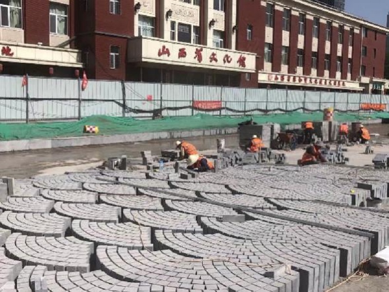 在二公司承建的太原市五一廣場改造工程市政道路改造及管網(wǎng)工程的施工現(xiàn)場,廣場西路、廣場環(huán)路、廣場東路、迎澤南街四條道路正在緊鑼密鼓地進(jìn)行扇形花崗巖丁石鋪裝作業(yè),一條宛如銀杏葉鋪設(shè)的美麗道路逐漸出現(xiàn)在市民眼前。