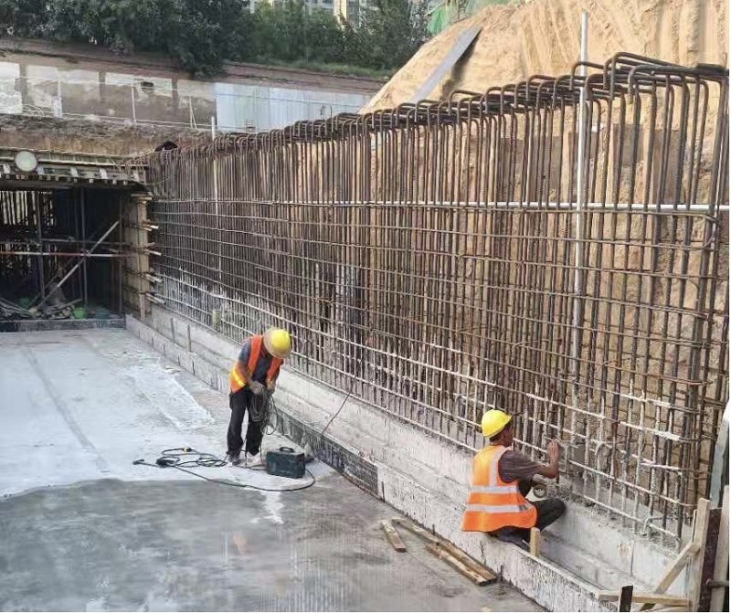 在K1+030處施工時(shí),南北方向有一條地下人行通道,項(xiàng)目部需要在通道內(nèi)安裝疏散指示燈、應(yīng)急指示燈、熒光燈等。在施工過(guò)程中,項(xiàng)目部緊跟道路施工方的施工進(jìn)度,當(dāng)?shù)缆肥┕し侥竟ぶ鹉>邥r(shí),項(xiàng)目部相關(guān)施工人員需要立即將鋼管預(yù)埋進(jìn)鋼筋架中,這就需要項(xiàng)目部和道路施工方緊密配合,施工員每日緊盯施工進(jìn)度,見縫插針式地完成管線預(yù)埋工序,為后續(xù)施工奠定了基礎(chǔ)。由于前期設(shè)計(jì)圖與施工實(shí)際情況有出入,無(wú)法確定電源箱的具體位置,現(xiàn)場(chǎng)技術(shù)負(fù)責(zé)人多次與設(shè)計(jì)院聯(lián)系,經(jīng)過(guò)不斷實(shí)地勘察、測(cè)量、畫圖對(duì)照,最終確定電源箱的實(shí)際位置,并在道路上增加了多條鋼管過(guò)路,確保送電時(shí)萬(wàn)無(wú)一失。