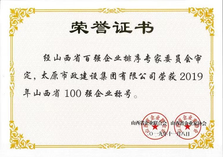 集團公司榮獲“2019年山西省100強企業(yè)”稱號,排名第39位。集團公司將持續(xù)深入踐行“以質量求生存、靠誠信促發(fā)展”的經營理念,增強發(fā)展信心,化挑戰(zhàn)為機遇,在爭創(chuàng)一流企業(yè)的道路上不斷取得新的成就,為實現我省經濟持續(xù)健康發(fā)展和全面建成小康社會做出新的貢獻。