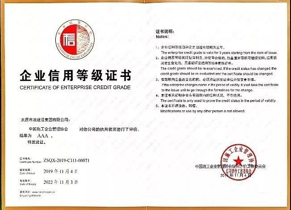 太原市政建設(shè)集團有限公司榮獲“企業(yè)信用評價AAA級信用企業(yè)”榮譽稱號
