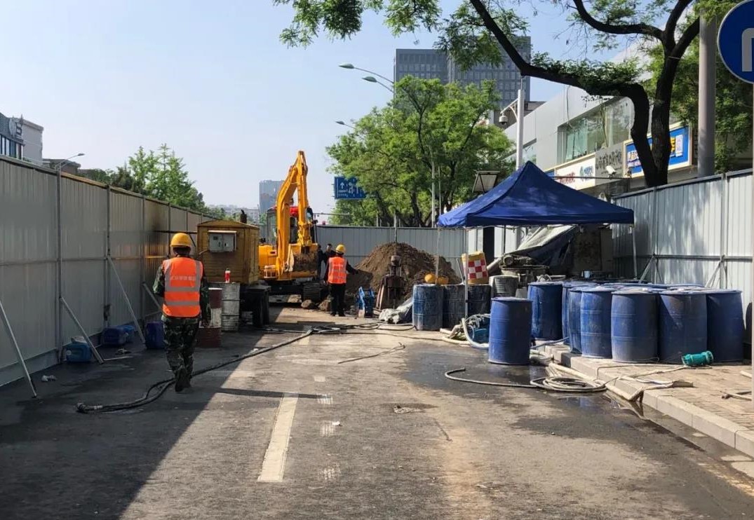 5月1日一早,三公司城南退水渠雨污分流及道路改造工程工地就響起了機(jī)械的轟鳴聲,挖掘機(jī)、注漿機(jī)、鏟車輪番上陣……項(xiàng)目部正在新建路段進(jìn)行污水接入井的注漿和支護(hù)工作,由于該區(qū)域地下土質(zhì)為液陷土,透水性較強(qiáng),易下陷,項(xiàng)目部經(jīng)過仔細(xì)研究后,決定采用二重管雙液注漿法對污水接入井進(jìn)行注漿。相較于傳統(tǒng)注漿工法,二重管雙液注漿法將兩種漿液通過雙重管輸送至鉆頭出口處進(jìn)行混合,通過調(diào)節(jié)漿液混合方式和注漿的方向性,控制注漿材料的凝結(jié)時(shí)間等,實(shí)現(xiàn)了注漿施工中對注漿方向、注漿量和注漿壓力的控制,使得加固范圍控制變得容易,漿液浪費(fèi)少,施工可操作性更好,有效確保了工程質(zhì)量。