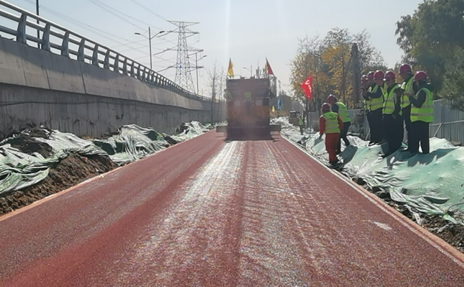 十一月的汾河,秋意正濃、萬(wàn)籟無(wú)聲,濱河自行車專用道工程一標(biāo)段的施工現(xiàn)場(chǎng)卻依舊熱火朝天,沿線隨處可見施工人員身穿工作服、頭戴安全帽的忙碌身影。隨著一標(biāo)段道路部分最上層彩色涂層開始鋪裝,項(xiàng)目部正式進(jìn)入決勝攻堅(jiān)階段。預(yù)計(jì)一標(biāo)段將于11月底完工。