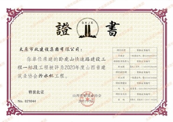 2020年度汾水杯 臥虎山快速路建設(shè)工程一標段